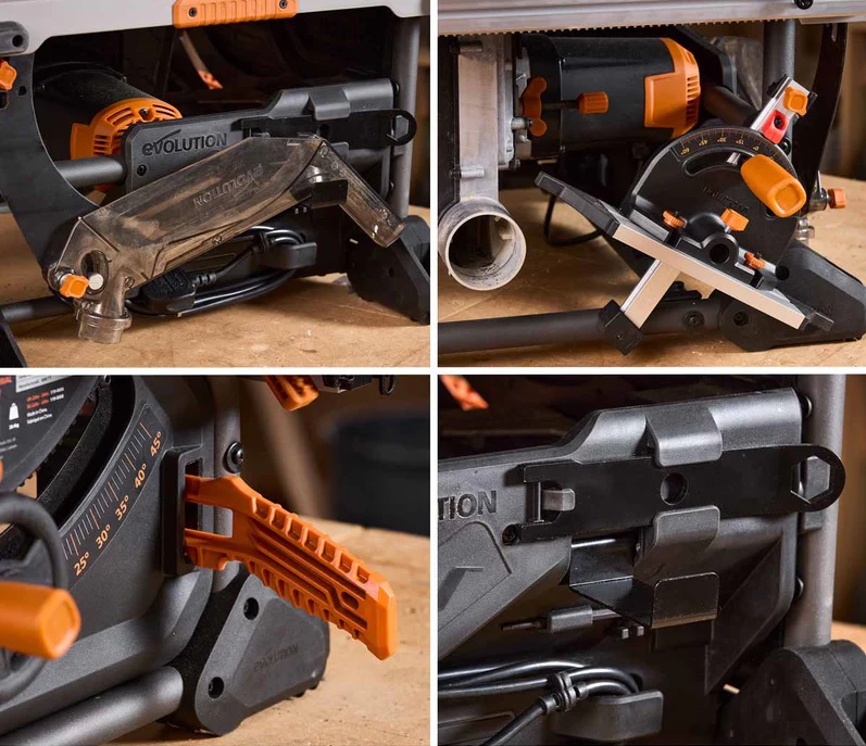 Unghiul de înclinare la 45° și ghidajul de tăiere în unghiuri de +/- 60° acoperă unghiurile de tăiere dificile