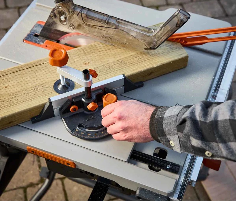 R255TBL+ este mai versatil. Ghidajul său integrat pentru tăiere în unghi utilizează un profil de canal standard pentru compatibilitate cu accesorii terțe, precum și ghidajul nostru special pentru tăiere în unghi cu clemă superioară. Oferă o adâncime de tăiere de 85 mm la 90 de grade și 58 mm la 45 de grade. Dispune de un blat de masă din fontă mai lat, cu un suport de alimentare integrat, permițându-i să manipuleze cu ușurință table de 8×4 picioare, cântărind în același timp mai puțin decât RAGE5-S. Adăugați la acestea un sistem îmbunătățit de colectare a prafului, capacitatea de a tăia o varietate de materiale și configurarea și reglarea fără unelte, și aveți cel mai versatil ferăstrău circular pe care l-am creat vreodată.
